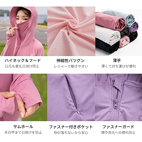 また、フードには大き目のツバもついているので、顔への日差しも遮ってくれます。袖も長めに設計されており、指穴があるので手の甲までをカバーすることができます。水に濡れてもすぐに乾く速乾素材で釣りにも最適です。
