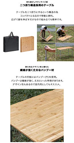 シンプルなデザインでどんなアウトドアサイトにでも馴染む竹素材の木製テーブル。竹素材は、繊維が強く丈夫な素材なので、調理道具や食器をたくさん載せても安心ですね。シンプルなデザインは、アウトドアだけでなく自宅でも便利なテーブルとしても利用できそうですね。