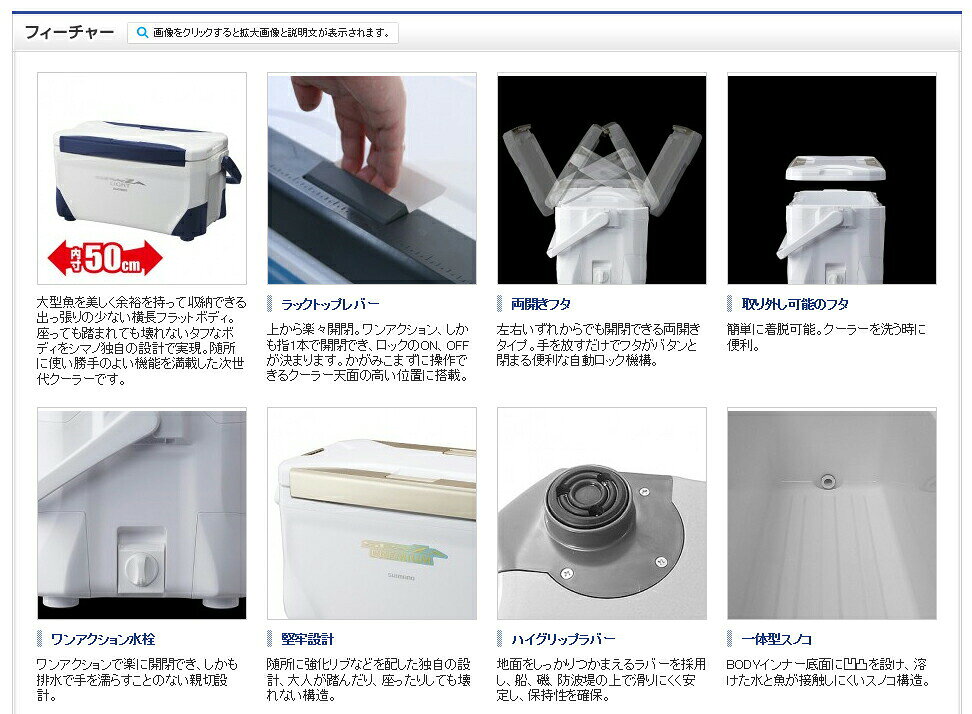 底面には滑り止めゴムが付いており、尚且排水しやすい構造など船釣りに適した特徴を持っています。ハンドルは安定感のある構造なので、持ち運ぶ時も内部の魚に傷がつきにくいです。