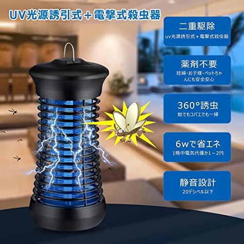 強力なキャッチ力で、蚊やアブ、ハエといった不快な虫を効率的に殺虫します。薬剤は使用せず、紫外線を利用して殺虫効果を発揮するため、なるべく人体に優しい虫除けランタンを探している方におすすめです。