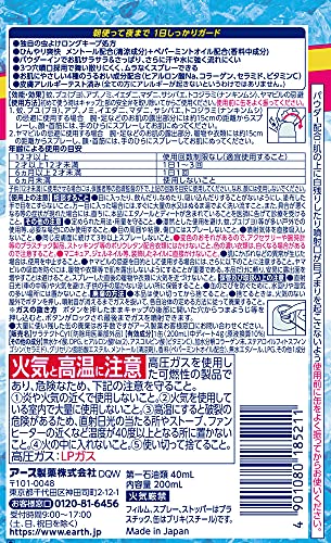 スプレーはエアゾール式で、広範囲にも楽々スプレーできるのもポイント。大容量なので、大人数で使うのにも向いています。なお、忌避成分はディートを使用し、配合割合は10%です。