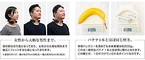 折りたたむと手のひらに乗るサイズで、大き目のポケットに入れて持ち運ぶことができます。重量も150gと軽量で、一日中首にかけていても疲れません。また、専用バッテリーはネッククーラーEvoの首背面部分に直接装着できるため、コードレス使用ができるのも人気の理由です。