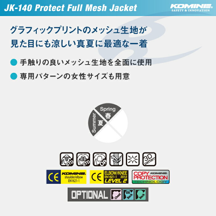 全身メッシュの「JK-140 プロテクトフルメッシュジャケット」は、立体裁断を採用しています。そのため前傾姿勢を常にとっていても運転しやすく、動きやすさを重視したい方におすすめです。メッシュなので通気性も申し分なく、ジャケット内部の蒸れも軽減させる仕上がりとなっています。