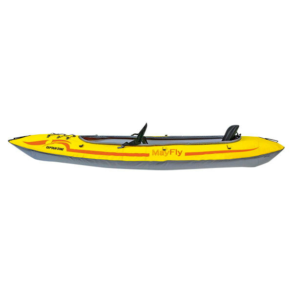 2人乗りの製品ですが長さが300cmと比較的短く、耐荷重が135kgのため、カップルや親子で利用するのがおすすめです。インフレータブル型ですが、ボトムは特殊な素材で補強されているので、多少岩場に接触しても支障はありません。ボトムにはフィンが取り付けられ、推進力を増しています。