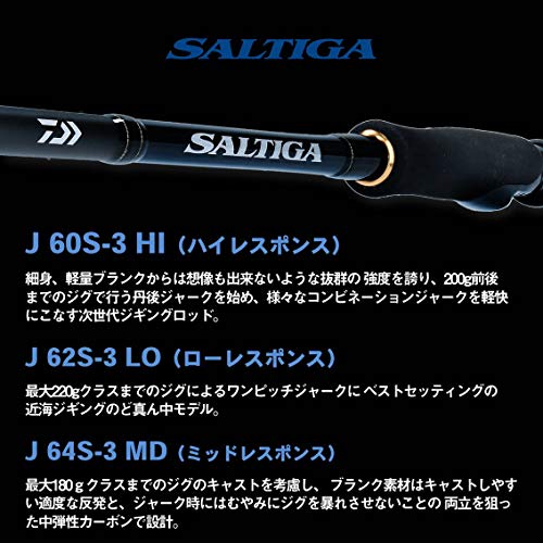 ダイワのボートフィッシング用ロッドの最上位機種で2020年に発売されました。「J64S-3MD」は対応するルアー重量が最大180gで、ラインナップのなかでは中間的なパワーのモデルです。