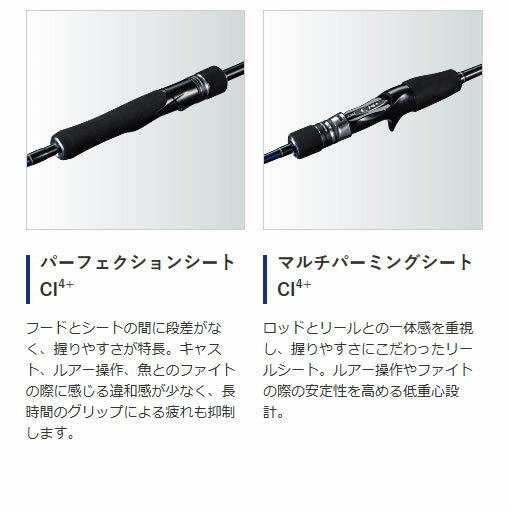 チタン素材のガイドによりライントラブルも少なく、繊細でグリップ力がある「パーフェクションシートCI4+」という最新のリールシートも搭載されています。