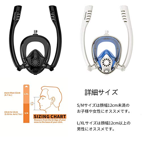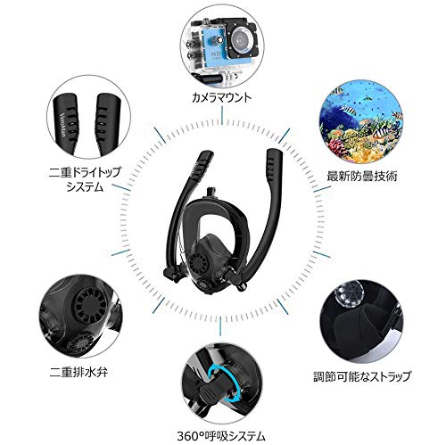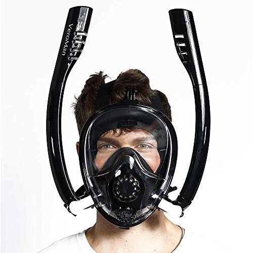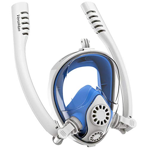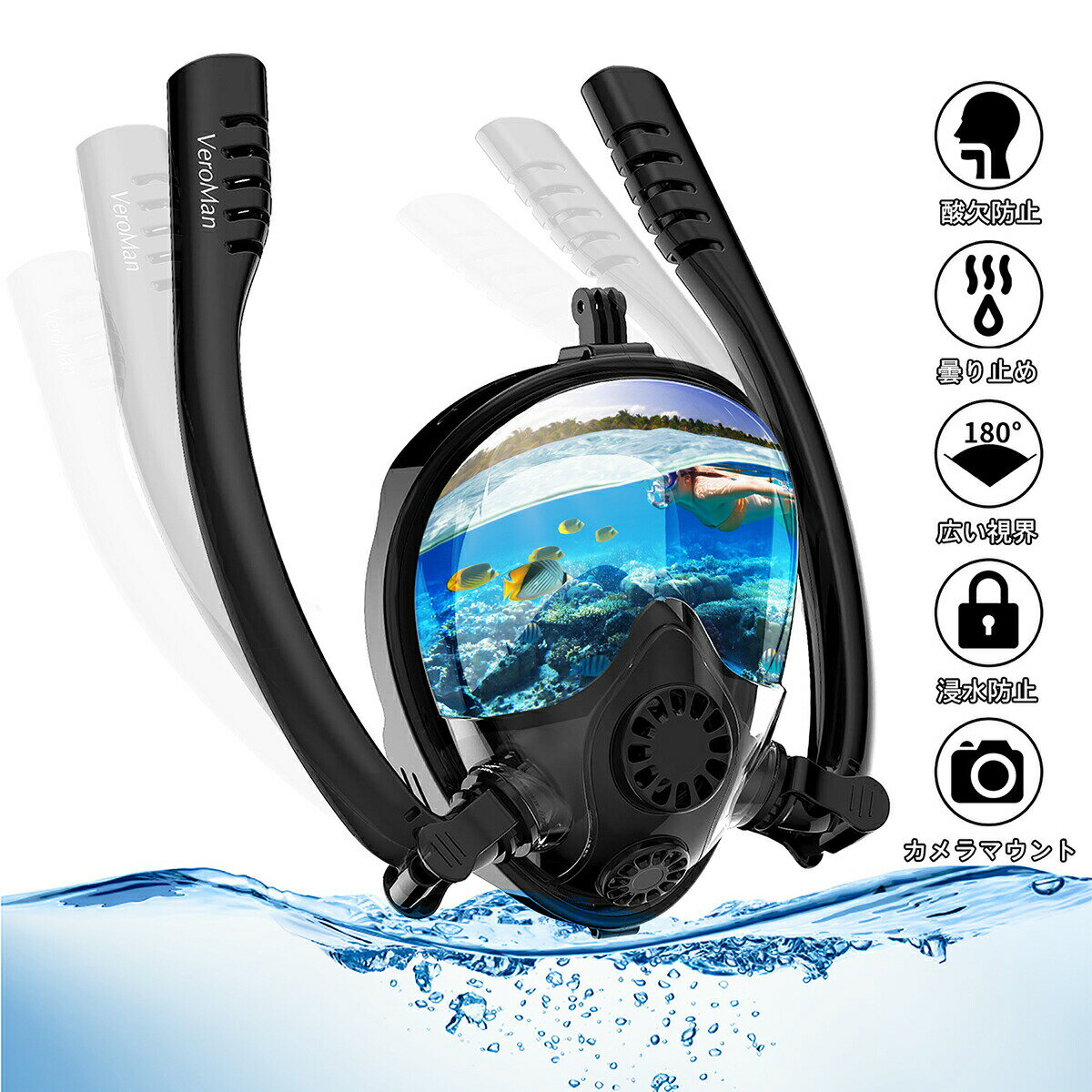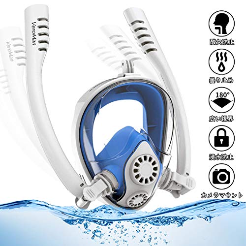 「VeroMan 循環システム搭載 シュノーケルマスク フルフェイス型」は、フルフェイス型なので180度の景色を楽しむことができます。シュノーケルは2本ついており、通常のモデルよりも呼吸しやすいため初心者にもおすすめです。