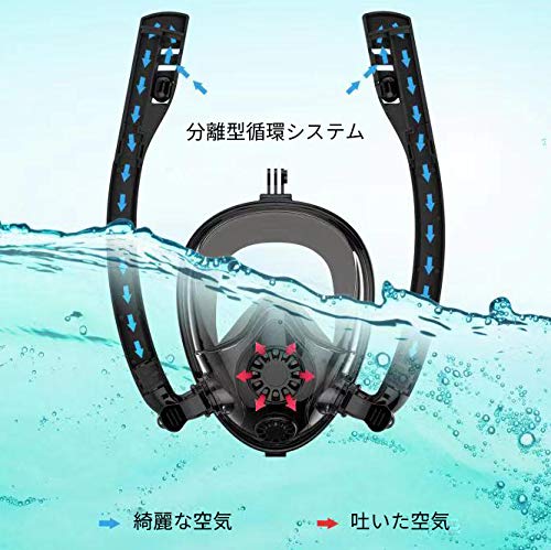 海中で撮影をしたい場合は、「VeroMan 循環システム搭載 シュノーケルマスク フルフェイス型」がおすすめです。頭の部分にカメラを取り付けることができるので、手を使わなくても海中の写真や動画が撮影できます。