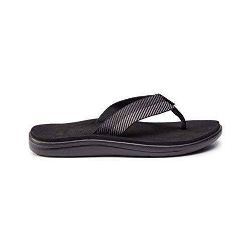 「Teva VOYA FLIP」は、トングの部分に布を取り入れたトレンド感のあるメンズビーチサンダルです。この布はリサイクルプラスチックから製造されており、環境保全にも役立ちます。また、耐久性の高い繊維なので長持ちするのも特徴的です。