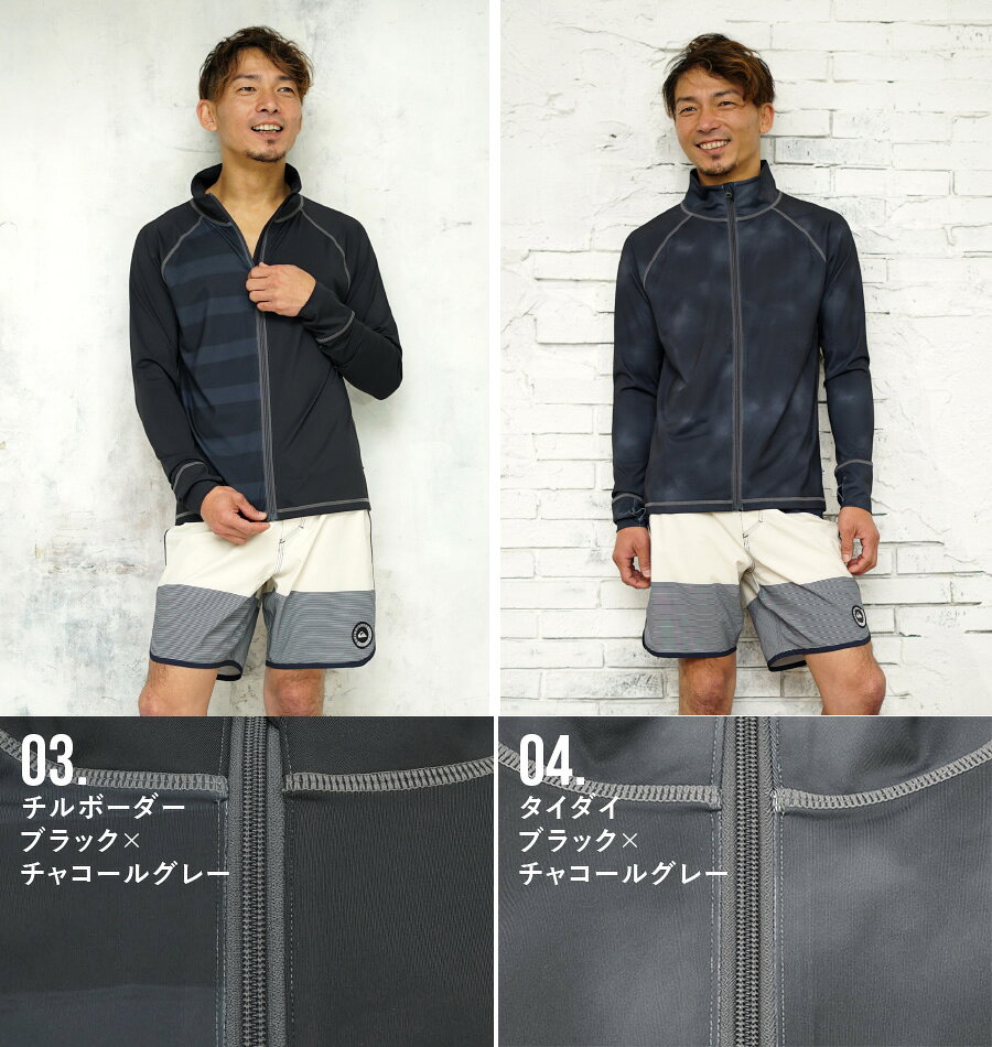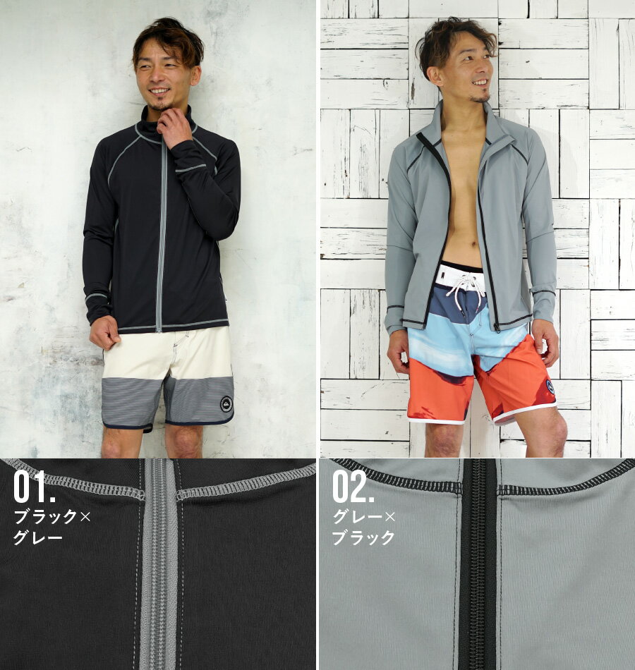 ②HeleiWaho メンズラッシュガード 長袖ジップアップ