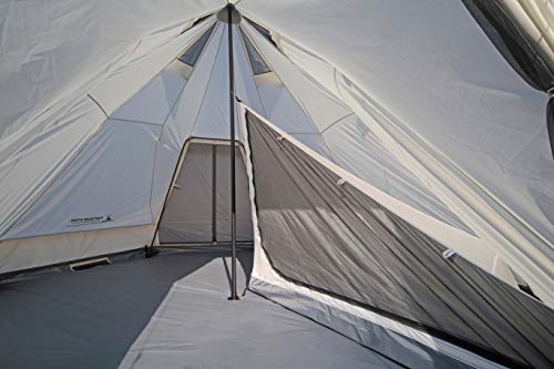 ティピー型よりも横幅のサイズが広いため、ゆったりと過ごせるでしょう。ポリエステル素材でできており、耐水性にも優れているため雨が降った時も安心です。室内インナーテントがついており、テント内にプライベート空間を作ることもできます。