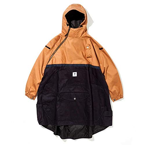 コンビネーションカラーのデザインが、焚き火ポンチョをよりおしゃれにかっこよく見せている1着です。サイズは男女の違いなどなくフリーサイズの1サイズ展開ですが、100cmもある十分な着丈は男性が着て火の前に座っても安心できる長さとなっています。