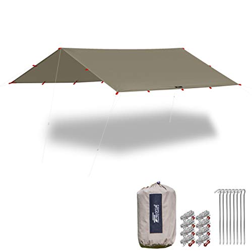 フィールドアはネット販売会社のクローバーが手がけるアウトドアブランドです。こちらのタープは遮光性や耐久性が高いTC(ポリコットン)素材を用いています。ソロでのタープ泊にも便利で、コンパクトサイズ(18cm×28cm)の収納袋に折りたためば、ザックに入れて持ち運びができるでしょう。