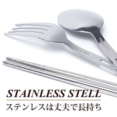 また、収納ケースがメッシュ状になっているのも特徴で、カトラリーを中に入れたまま吊して乾かすことができます。ナイフは硬い肉でも切れる強度があり、手になじむサイズの箸やスプーンは使い勝手も抜群です。