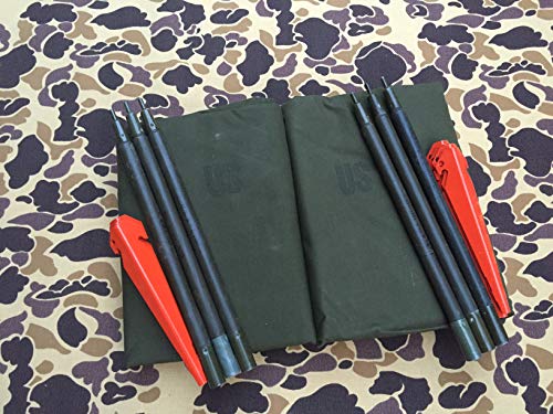 USパップテントの幕は、2枚の布をボタンで連結することで完成します。1枚布の時にはポンチョやレインコートとして使用していたため、アメリカ軍の人々は2人1組でパップテントを使用していました。