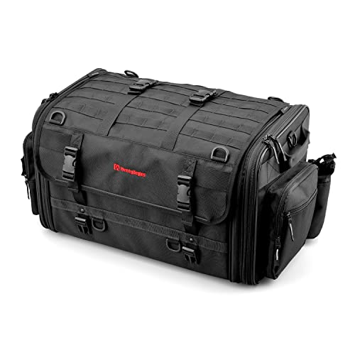 キャンプ用品ブランドとしても人気の高いドッペルギャンガー(DOD)ではバイク用のシートバッグも販売しています。こちらは通常でも60Lもある大容量のシートバッグです。内部が大きくてもバッグが型くずれしないPEボード骨格を使っているため、シートに装着しても中の荷物を守ってくれます。