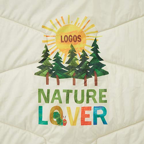 一般的な掛け布団と同じサイズ(140×190cm)になっているので、子どもと大人が1人ずつ、一緒に寝られます。表面にはLOGOSのロゴやはらぺこあおむしのオリジナルイラストがあしらわれており、とても可愛らしいデザインにまとまっています。