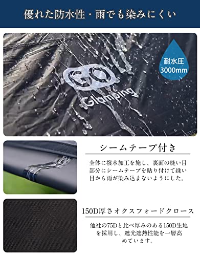 また、こちらも持ち手付の収納バッグがついているため、持ち運びも便利です。高さは220cmで、4~6人で利用するのに最適なサイズとなっています。また、縫い目から雨の侵入を防ぐシームレス加工がしてあるため、雨の日も安心して利用できるでしょう。