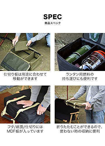 どんなサイズのランタンでも収納したい時におすすめの商品が、フィールドドアのマルチランタンケースです。内部には取り外し可能な仕切り板が2枚付いているため、ランタンの大きさに合わせて調節することができます。大きいサイズのランタンを一つだけ入れたり、大小2つのランタンを入れたりしてもよいでしょう。