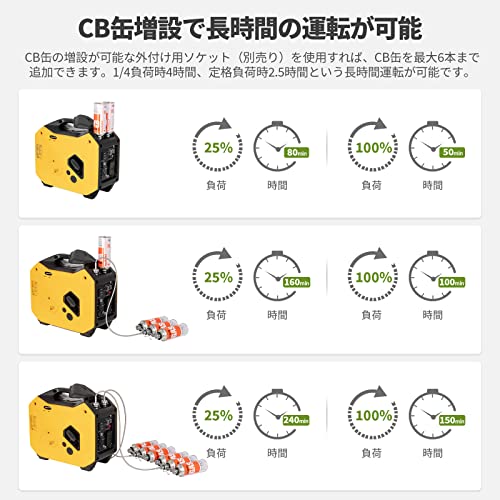 CB缶を利用して発電できるため、どこでも電力を生み出せます。また、燃料となるCB缶はコンビニでも買えるので電力切れに困ることもないでしょう。しかし、静寂性が低いとされているものでも音が出るため、キャンプ場では使えないこともあります。