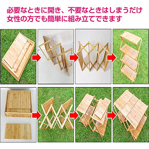 バンブーラックは、あらゆるアウトドアメーカーから販売されているキャンプの定番アイテムです。折りたたむとコンパクトになりますし、テーブルとしても使えます。また、5,000円程度から揃えられるコスパのよさも魅力といえます。