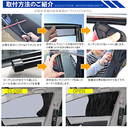 手間を省くのであれば、車種に合わせたパネル・カーテンキットが最適です。ディーラー社外品となりますが、2〜3万円程度で販売されています。使い方も簡単で、窓に合わせてはめ込むか、レールを両面テープで接着すれば設置可能です。