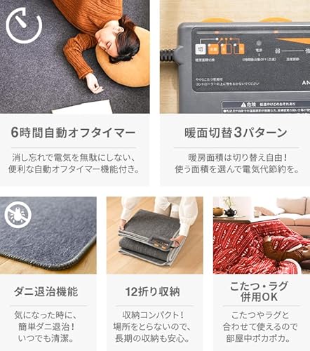 ぜんそくやアレルギーの原因になってしまうダニも、高温設定で退治することが可能。柔らかい素材のカーペットなので簡単に折りたたむことができ、使わないときはコンパクトサイズで収納することができます。
