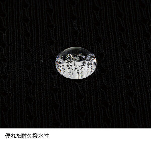 ドライレイヤーは肌に直接着るメッシュ状のインナーです。表示は撥水加工になっており水分(汗)を弾きますが、肌に触れる裏側は何の加工も施されておらず、メッシュにより汗がドライレイヤーの表地の方に移動するように作られています。