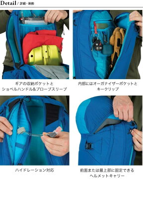 オスプレーのこちらのザックは、トレッキングポール使用する方におすすめです。オスプレー独自で開発した構造により、ザックを降ろさなくてもトレッキングポールを取り付けることができます。そのため、スムーズな登山が可能です。