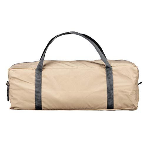 いつかのタープは扱いやすさこだわってコットンではなく、化繊とコットンの混紡のTC素材を採用したタープです。本品も他のTCタープと同様に火の粉に強く、結露にも強く遮光性も高いため冬だけではなく夏でも快適に使えます。