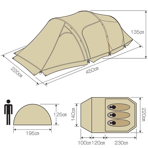 3人用のテントのためインナーは広くゆとりのある195×210×高さ125cmもの大きさがあるため2人でもゆとりがあります。また、吊り下げ式インナーのため、初心者でもアレンジが簡単にできるところも大きな魅力。インナーを使わない場合は、220×450×高さ135cmのシェルターとしても活用できます。