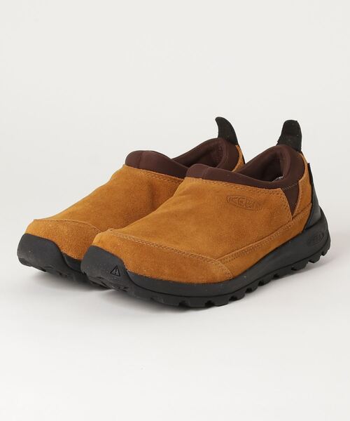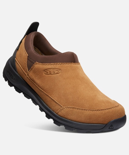 キーンのロングセラーモデル「ハウザー」に防水加工が施されたプレミアムバージョン。脱ぎ履きしやすいスリップオンデザインが特徴です。アッパー素材のスエードには撥水処理が施されているため、タウンユースからアウトドアまで快適に使えます。新開発のソールユニットが採用されており、長時間履いても快適さをキープ可能です。