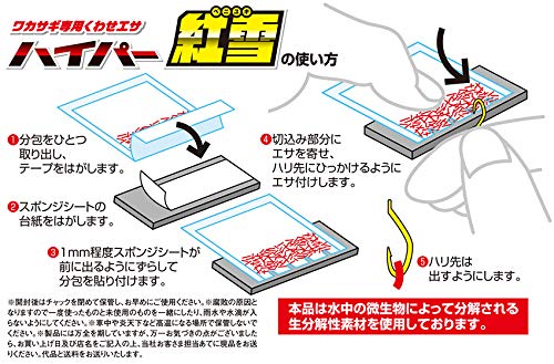虫以外の餌には、さまざまな種類がありますが、中でも食いつきがよいことで人気を集めているのが、ハイパー紅雪です。生分解性素材を原材料として採用し、ワカサギが好む成分にこだわりを詰め込んでいます。