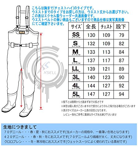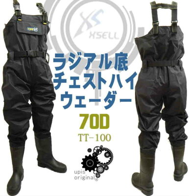 チェストハイウェーダーなので、腰のあたりの深さまで大丈夫。ラジアルソール仕様で、軽くて動きやすいナイロン生地がスレに対して強く保温性もある素材です。