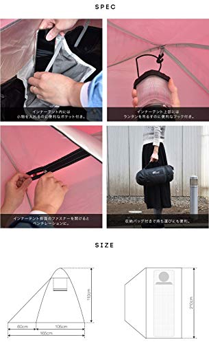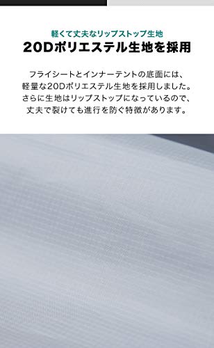 本品は高いスペックを持つところが大きな魅力。フライシートは2000mmもの耐水圧があり雨に強く、UVカットも施されています。また、シルバーコーティングによりテント内の温度が上昇しづらい作りです。シルバーコーティングは他社のテントあまり見かけないため、本品の大きな特徴と言えるでしょう。