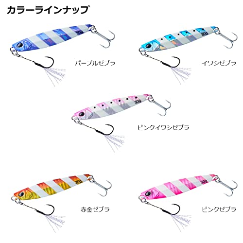 「サムライジグ R」の登場で旧モデルとなってしまいましたが、実釣性能は十分でフックセッティングもバッチリ。カラーは太刀魚に効くグローゼブラ系が揃っていて、塗装の耐久性を高める加工が施されています。
