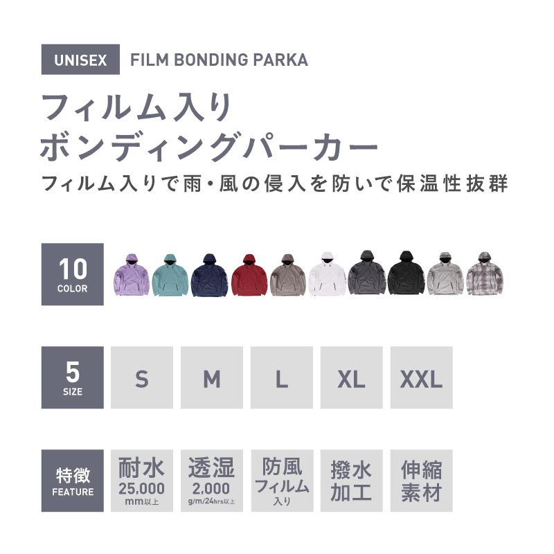 防水性だけでなく防風性を兼ね備えているため、吹雪のような状況下でも寒さを感じにくいのが「ビーラン namelessageFILM BONDING PARKA」。表と裏の生地の間に特殊なフィルムを挟んでおり、防水性と防風性をアップさせています。