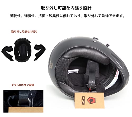 かっこいい見た目だけでなく、使用しているガラス繊維素材の機能性も魅力的。バイクヘルメットに使われがちなABS樹脂素材よりも軽く、強度や耐衝撃性にも長けています。また、緩衝材にも耐久性に優れたEPS素材が使われているので、体にも負担をかけずに安心してバイクに乗れるでしょう。