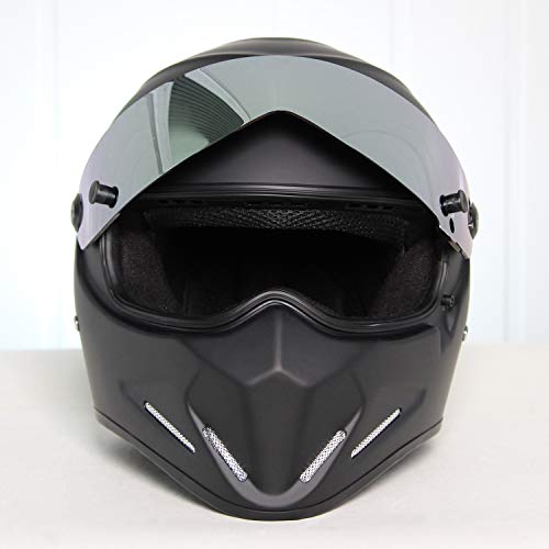 つや消し加工を施したボディと、美しく光り輝くシールドのコントラストがかっこいいのが、「C&B CRG ATV-4 バイクヘルメット」。ボディ自体はシンプルですがシールドがアクセントになるため、派手すぎるヘルメットを避けたいユーザーにもおすすめです。