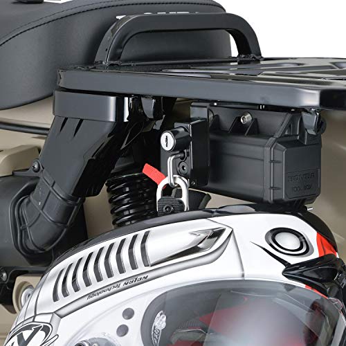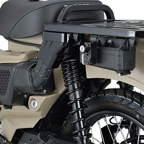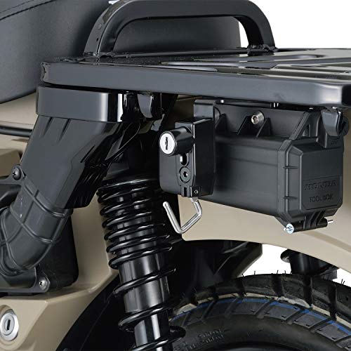 ハンターカブ純正のヘルメットホルダーは扱いにくいとの口コミがあるので、カスタム用の商品を2つご紹介しましょう。デイトナの商品は純正ホルダーを収納するツールボックスのスペースを利用します。そのため、バイクの外観をあまり変えずに済むのがメリットです。