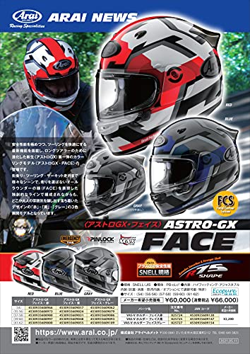 レース仕様の安全規格SNELLを満たすハイスペックでスタイリッシュでカラーも素敵なフルフェイスモデルです。世界初のシールドシステム「VAS」を搭載し側頭部のシールド取付け位置を24mm下げることでSNELL規格テストラインの僅かな段差をなくし、衝撃をかわしやすい滑らかで理想的なフォルムを実現しています。
