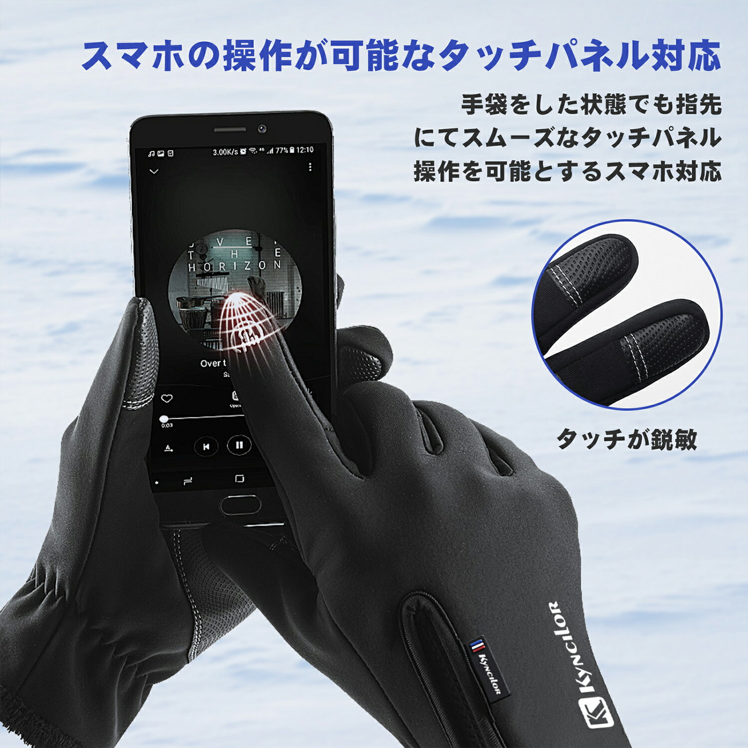 指先部分は伝導性テクノロジーを用い5本の指全てでタッチパネル操作ができ、手首部分は弾性バンドとジッパーで着脱がしやすいのが特徴です。快適な着け心地をキープする優れものの防寒手袋と言えます。