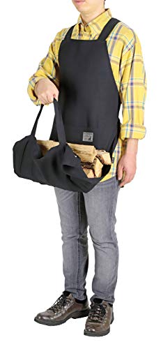 焚き火やバーベキューの際は、火に強いことにプラスして、薪を運びやすいエプロンだと便利です。こちらは裾の部分に薪をくるんで、一度にたくさんの薪を簡単に運べるようになっています。裏側に取っ手がついているため片手で薪を運び、もう片手で荷物を持つことも可能です。