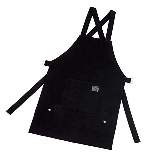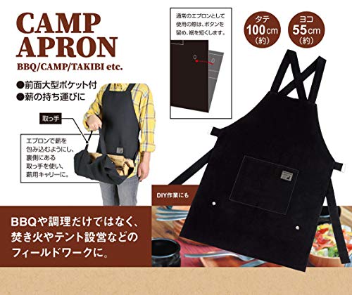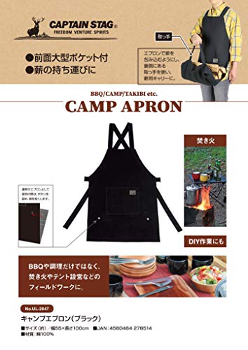 綿素材特有のナチュラルな質感と、黒一色でまとめたシンプルさが「CAPTAIN STAGキャンプエプロン」の魅力。綿素材はおしゃれなだけでなく火に強いので、焚き火やバーベキューの近くで作業をしても安心です。