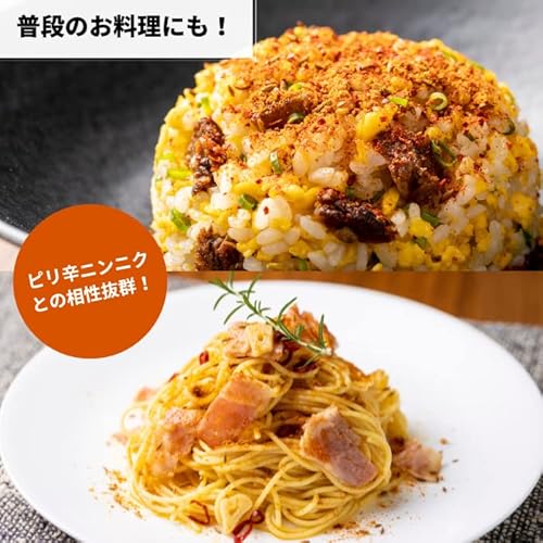 バカまぶしは唐揚げやラムチョップの下味、ポークソテーなどによく合います。またご飯や麺との相性もよく、チャーハンやピラフの味付け、焼きそばなどにもおすすめです。たっぷりとかけるのがポイントで、簡単に美味しいカレー味の料理が作れます。