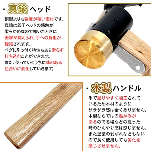 持ち手の部分には木製の素材を使い、女性から男性まで握りやすい長さ・サイズを意識してデザインされているのもポイントです。長期間使用しても劣化しにくく、初心者でも取り入れやすいでしょう。長く愛用できるペグハンマーを求めている方におすすめです。