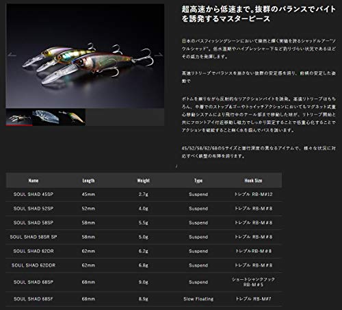 ソウルシャッドは琵琶湖の近くに本社を置くジャッカルのロングセラーです。62DDRは潜行レンジが3mほどと、シリーズ中で最も深くまで潜れるルアーのため、深い湖のセカンダリーポイントに滞在する春のブラックバスにも有効でしょう。価格は1,771円ほどで10種類以上のカラーをラインナップしています。