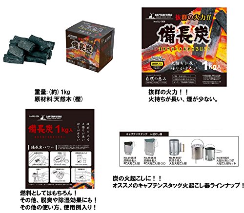 非常に扱いやすくすぐに火力も安定すると評価されているキャプテンスタッグの人気の炭です。火持ちもある程度あり初心者の方でも扱いやすくかまど型の小型サイズのグリルでじっくりバーベキューをする時に便利な炭となっています。