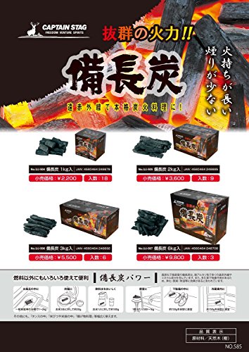 本品はキャプテンスタッグから発売されている高級炭としておなじみの備長炭。高い火力による調理ができるため本格的な炭火焼き、バーベキューをしたい方におすすめの炭です。最小数が1kgからとソロキャンプでも使いやすく大人数でも対応できるように6kgのものもあります。