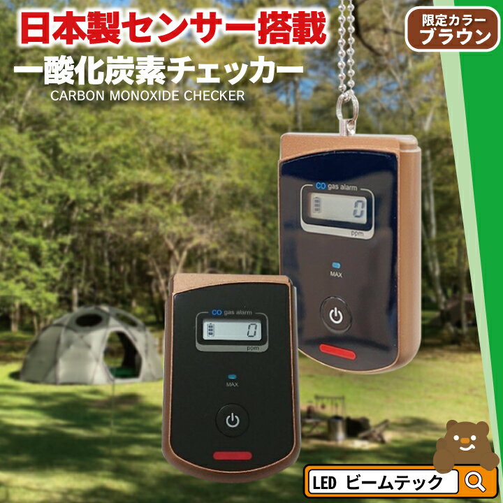 ビームテックという埼玉県のLED照明メーカーが販売する一酸化炭素チェッカーです。中国で製造されるOEM品ですが、センサは国内ガスセンサ大手のネモト・センサエンジニアリング製を搭載しています。